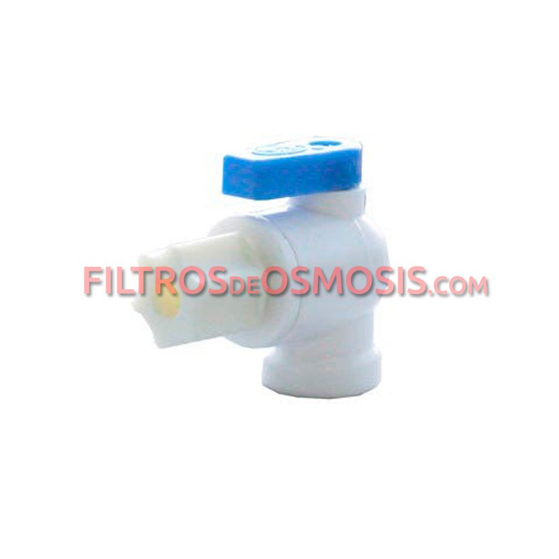 Esta válvula de cuarto de vuelta se adapta a todos los depósitos de agua presurizados que tienen un conector NPT de 1/4 de pulgada. Te permite abrir y cerrar el circuito de agua acumulada del equipo de osmosis inversa.