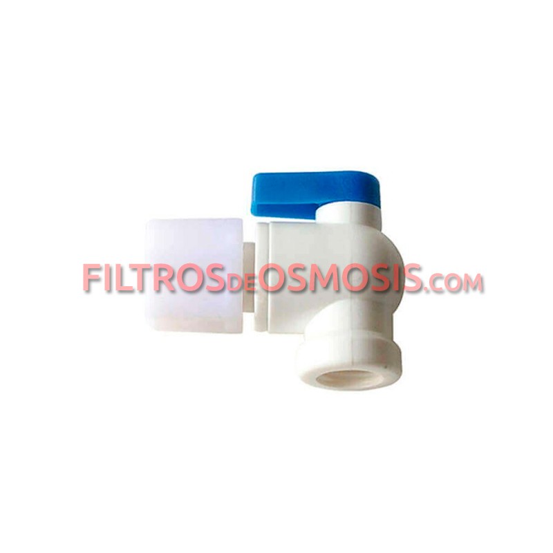 Esta válvula de cuarto de vuelta se adapta a todos los depósitos de agua presurizados que tienen un conector NPT de 3/8 de pulgada. Te permite abrir y cerrar el circuito de agua acumulada del equipo de osmosis inversa.